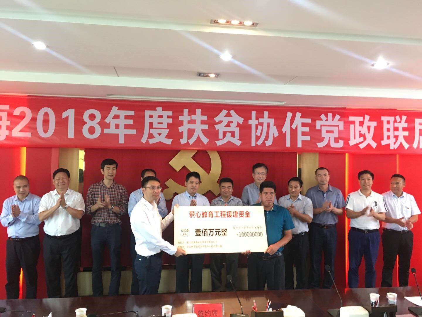 2018年7月17日,南海區(qū)黨政企代表團(tuán)一行18人,在市委常委、區(qū)委書記黃志豪的率領(lǐng)下,來到四川省涼山州,對(duì)南海對(duì)口幫扶的甘洛、越西、喜德三個(gè)深度貧困縣,開始為期四天的扶貧協(xié)作調(diào)研。18日上午,“喜德-南海2018年度扶貧協(xié)作黨政聯(lián)席會(huì)議”召開舉行。會(huì)議上,廣東樂居商貿(mào)集團(tuán)向涼山州喜德縣米市鎮(zhèn)捐贈(zèng)愛心教育工程援建資金100萬(wàn)元,助力精準(zhǔn)教育扶貧。
