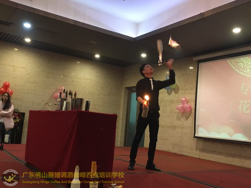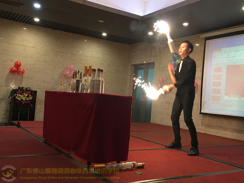 2018年1月26日佛山展翅調(diào)酒咖啡西點培訓學校的調(diào)酒師朱歡洪再次受邀出席廣州大本營貿(mào)易有限公司的迎春晚會,并擔任活動現(xiàn)場花式調(diào)酒演出嘉賓。如果你想成為一名優(yōu)秀的花式調(diào)酒師,要不斷的實踐、學習、讓自己擁有更豐富的知識。當你的技術(shù)得到認可的時候,你才真正的贏得了他人的尊重http://www.ourdy.cn 接下來,讓我們一起回顧一下當天晚上現(xiàn)場的氣氛吧!