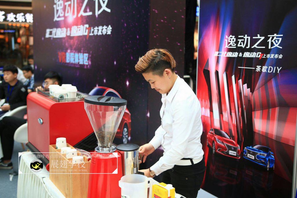 2018年3月27日,佛山展翅調(diào)酒咖啡西點(diǎn)培訓(xùn)學(xué)校的咖啡學(xué)員受邀參加逸動(dòng)之夜廣東站發(fā)布會(huì)。在現(xiàn)場(chǎng)的茶歇DIY環(huán)節(jié),我們的咖啡師給現(xiàn)場(chǎng)的觀眾沖調(diào)咖啡飲料,并現(xiàn)場(chǎng)教學(xué)如何拉花,讓感興趣的朋友也可以體驗(yàn)到咖啡的魅力和樂(lè)趣。