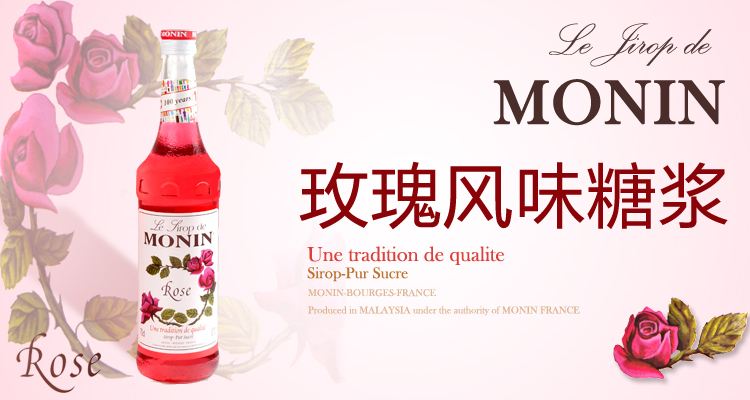 1. Monin的玫瑰糖漿是明星產品,毫不吝嗇的使用上等玫瑰精油。關于取舍的話大家看看自己的配方是不是需要用到糖漿。取得度相對來說比較簡單,風味也比較柔和好把控。