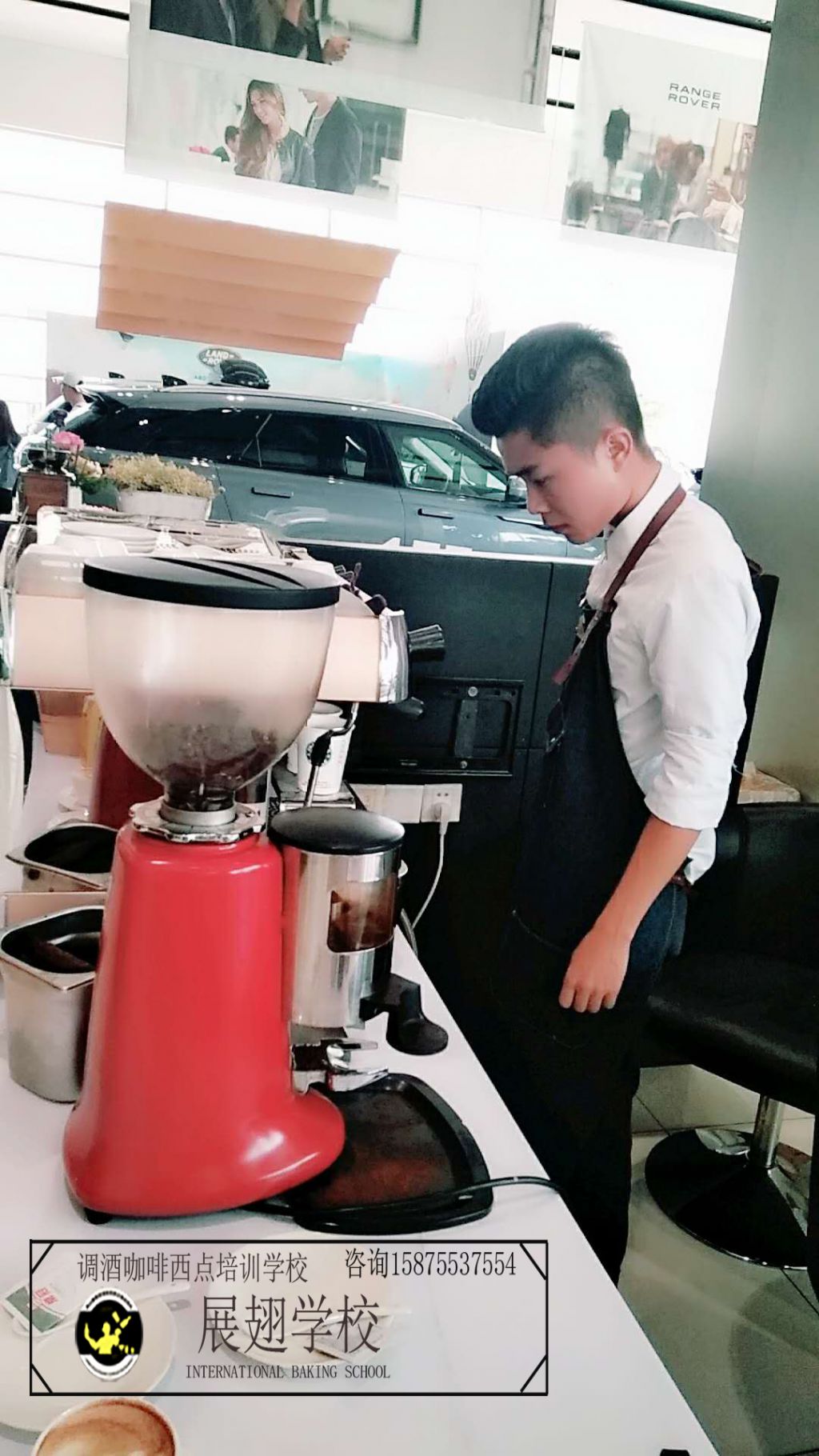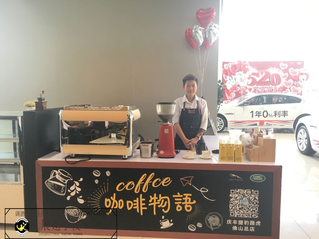 2018年5月19~20日 佛山慶豐捷豹路虎車行再次邀請佛山展翅調酒咖啡西點培訓學校的學員在現場擔任咖啡師,為現場的嘉賓和觀眾朋友們獻上現磨現沖的咖啡,整個現場都飄滿了濃濃的咖啡香味。對于我們的學員來說,這又是一次鍛煉自己拉花水平的機會,也是一次很好的實戰經驗。認真對待每一次的實踐活動,讓自己成長得更快。