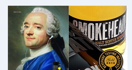 深黑色的酒罐上,以各種形容Smokehead威士忌風味的英文詞如peaty、smoky、powerful...組成一具骷髏頭。充滿十足的神秘感,更在視覺上帶來極其震撼的感覺,緊緊抓住了消費者的眼光
